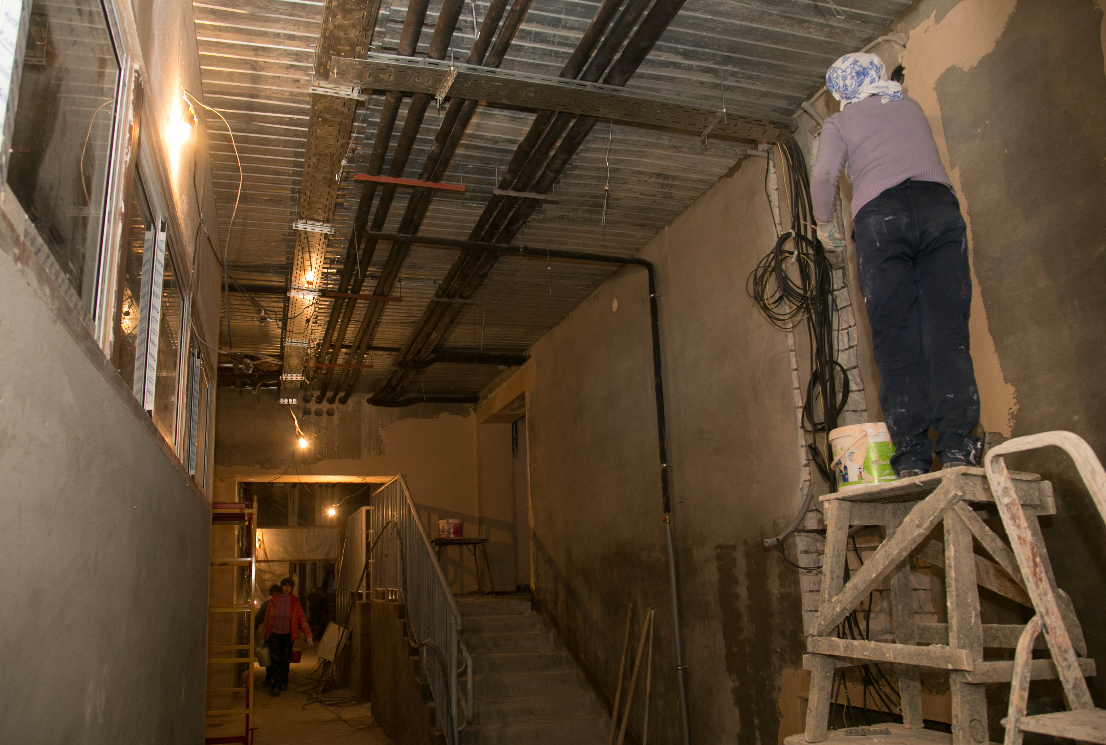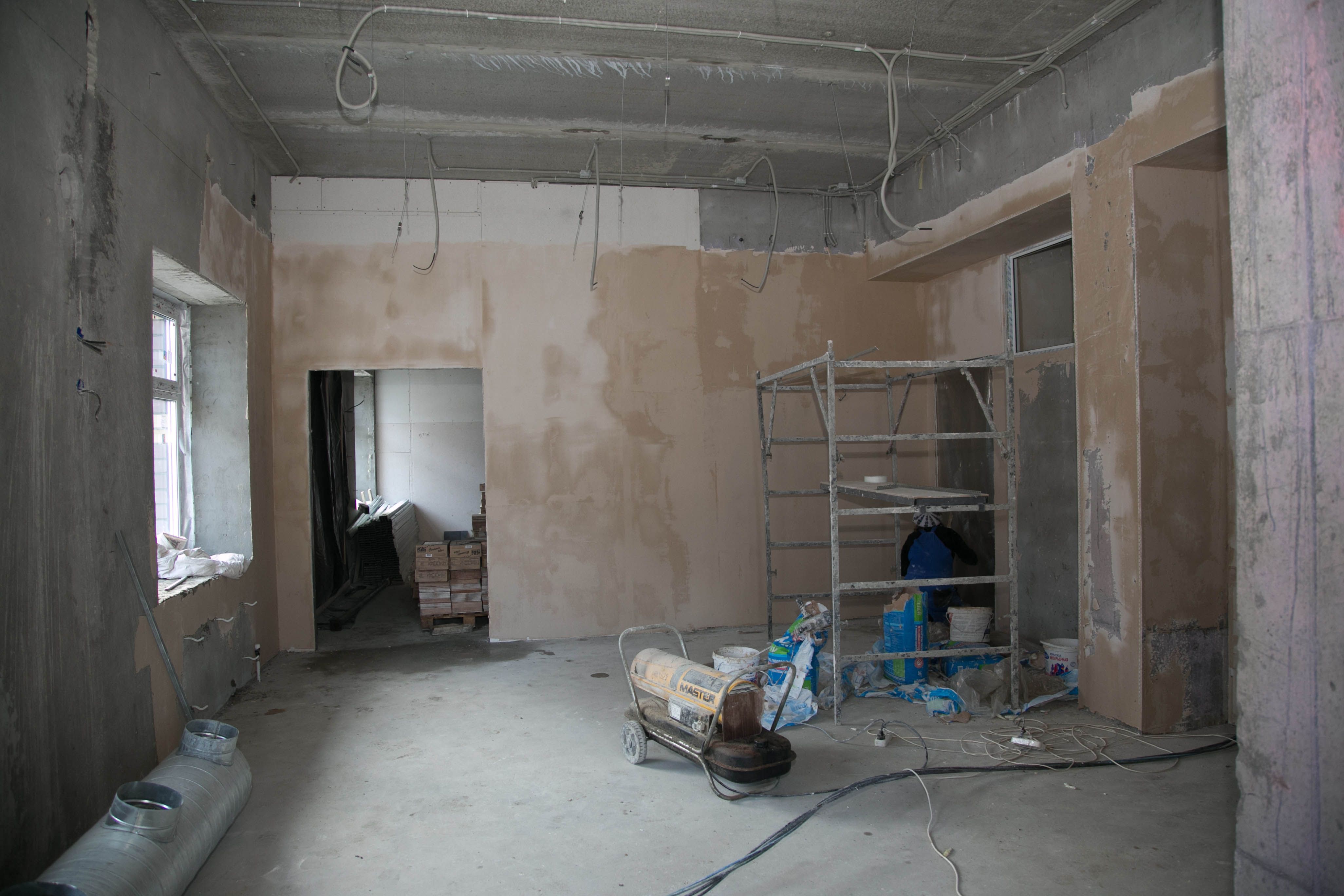 Работы на объекте спорятся: если осенью тут был просторный холл, в котором, наверняка, разместился бы какой-нибудь очередной торговый центр, то сейчас все перегорожено, начинают угадываться очертания детского сада.