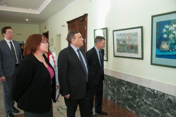 Перед концертом Глава республики посетил выставку, на которой были представлены художественные работы учеников и выпускников учебного заведения – на холсте, в скульптуре, резьбе по дереву, в графике, вышивке. Александр Евстифеев дал увиденным работам высокую оценку.