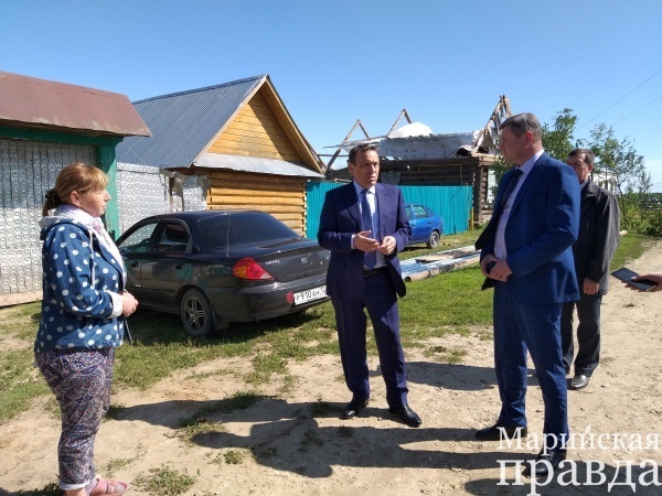 Сегодня, 13 августа, Глава республики Александр Евстифеев побывал в пострадавшей от шквалистого ветра деревне Малый Карамас Моркинского района Марий Эл, где пообщался с жителями, осмотрел последствия разгула стихии и на месте поручил главам администрации района и сельского поселения помочь людям.