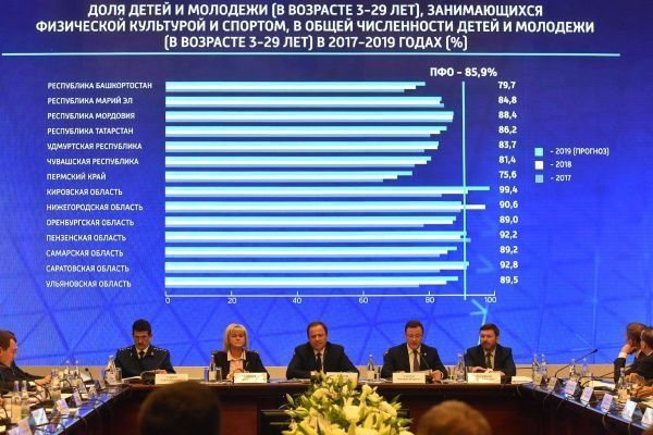 Марина Томилова отметила, что для достижения показателей большое влияние оказывает реализуемый федеральный проект «Спорт - норма жизни». По её словам, в ПФО выстроена системная работа по развитию спорта и оздоровлению граждан. Неслучайно, регионам доверяется проведение соревнований самого высокого уровня. Замминистра спорта РФ напомнила в частности о летней Спартакиаде в Марий Эл и о соревнованиях в других регионах, например, о фестивале дворового спорта в Самарской области, о Всероссийских зимних спортивных играх в Удмуртии и других.