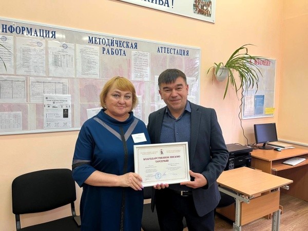 Александр Смирнов от имени Государственного Собрания Марий Эл наградил благодарственными письмами заместителя директора по воспитательной работе Надежду Иванову и преподавателя-организатора основ безопасности и защиты Родины Эдуарда Борисова за большой личный вклад в дело обучения и воспитания подрастающего поколения.