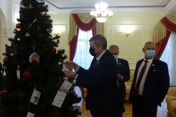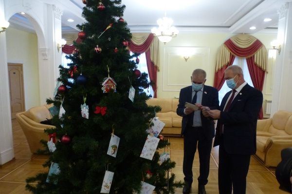 Задумка подкупала своей простотой. Во Дворце конгрессов Марий Эл установили необычную елку: помимо игрушек, ее украшали... открытки с пожеланиями воспитанников детских домов.