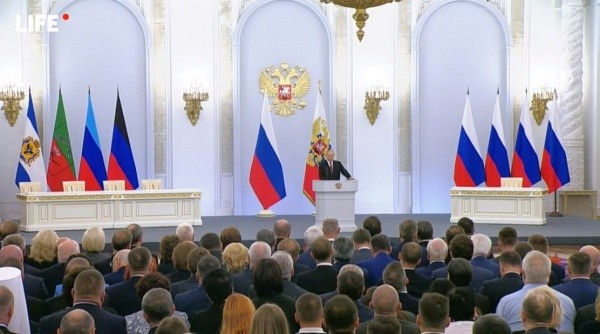 Сегодня в Георгиевском зале Кремля состоялось подписание договоров о вхождении в состав России Донецкой и Луганской народных республик, Запорожской и Херсонской областей. На торжественной церемонии присутствовали главы всех четырех регионов, сенаторы, депутаты Госдумы и губернаторы.