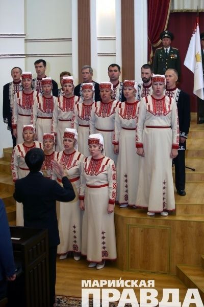 Коллектив Марийской государственной капеллы им. А.И.Искандарова исполнил Государственный гимн Российской Федерации и Государственный гимн Республики Марий Эл.