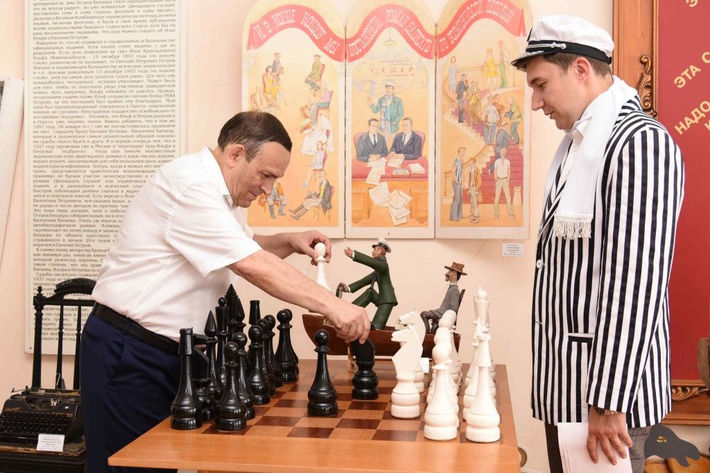 Глава Марий Эл Александр Евстифеев и Заслуженный мастер спорта России Сергей Карякин оставили свои подписи и пожелания в книге «Почетных васюкинцев», после чего направились в Художественно-исторический музей имени В.Григорьева. Там их ждали воспитанники Шахматной школы Карякина, открывшейся осенью прошлого года в Йошкар-Оле. Воодушевленные ребята готовились провести с гроссмейстером сеанс одновременной игры.