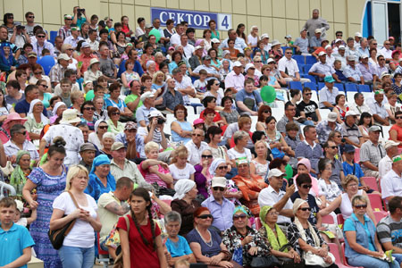 «Дорогие друзья, рад вас видеть на нашем стадионе, на «Сабантуе». Я очень люблю этот праздник. И сегодня, несмотря на то, что только вернулся из командировки, счел своим долгом приехать и с вами вместе поучаствовать. Я рад, что каждый год у нас сохраняется хорошая традиция принимать гостей республики со всех районов и проводить Сабантуй в центре города в одном из лучших спортивных мест - на стадионе «Дружба». От себя лично и от имени правительства желаю всем вам личного благополучия, успехов нам и нашей республике», - сказал Глава Марий Эл Леонид Маркелов и в завершении поздравил собравшихся на татарском языке.