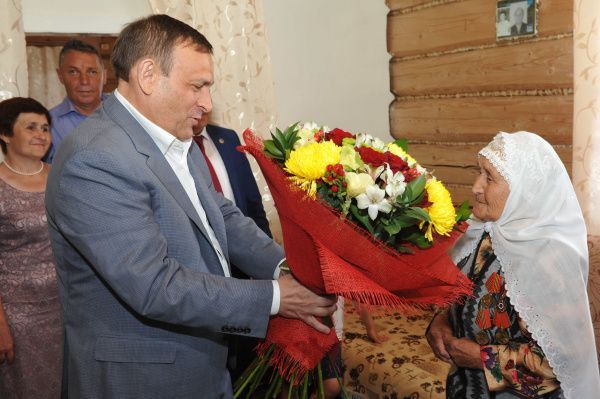 Поздравить женщину с юбилеем приехал Александр Евстифеев. Зайдя в дом труженицы тыла, он подарил ей цветы и поблагодарил за все, что женщина сделала для республики и всей страны.