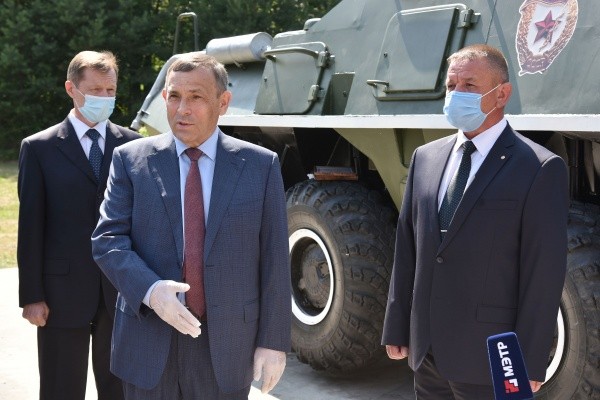 Александр Евстифеев осмотрел экспонат – бронеавтомашину БТР-80, а также представил своего нового советника по военно-патриотическому воспитанию. Им стал Сергей Сидоркин, много лет возглавлявший военный комиссариат Марий Эл.