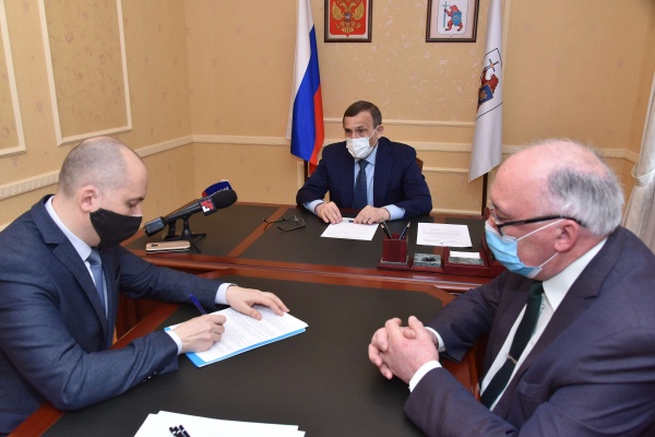 То, как идет работа по благоустройству города, обсудили на встрече в Доме Правительства Глава Марий Эл Александр Евстифеев и мэр Йошкар-Олы Евгений Маслов.