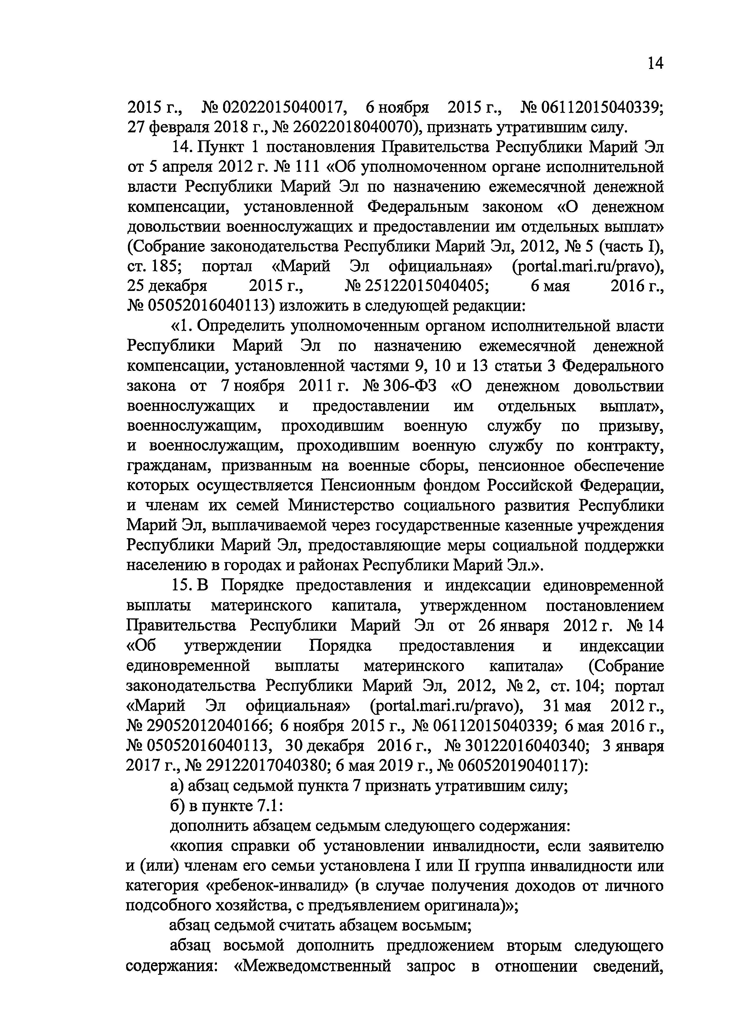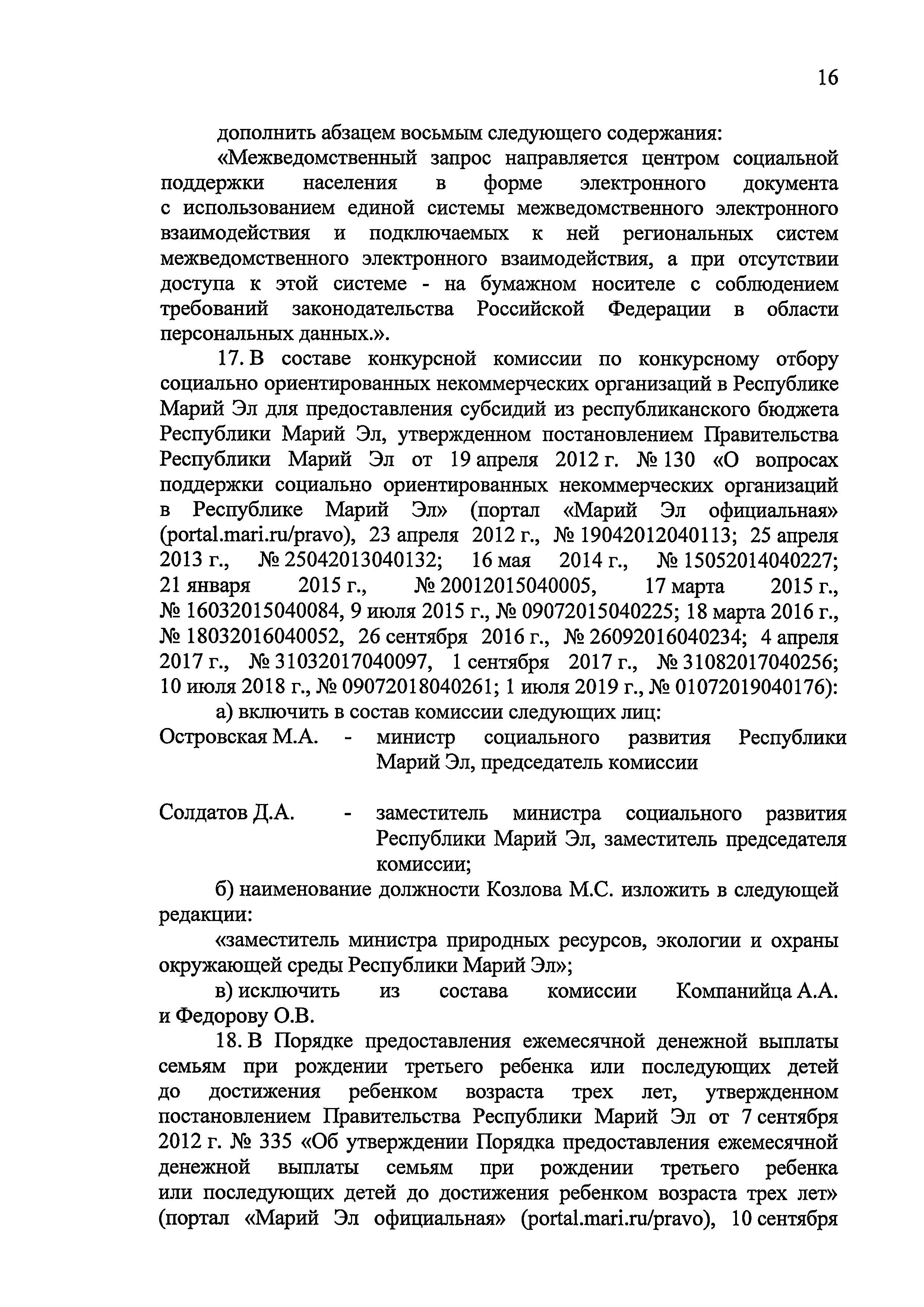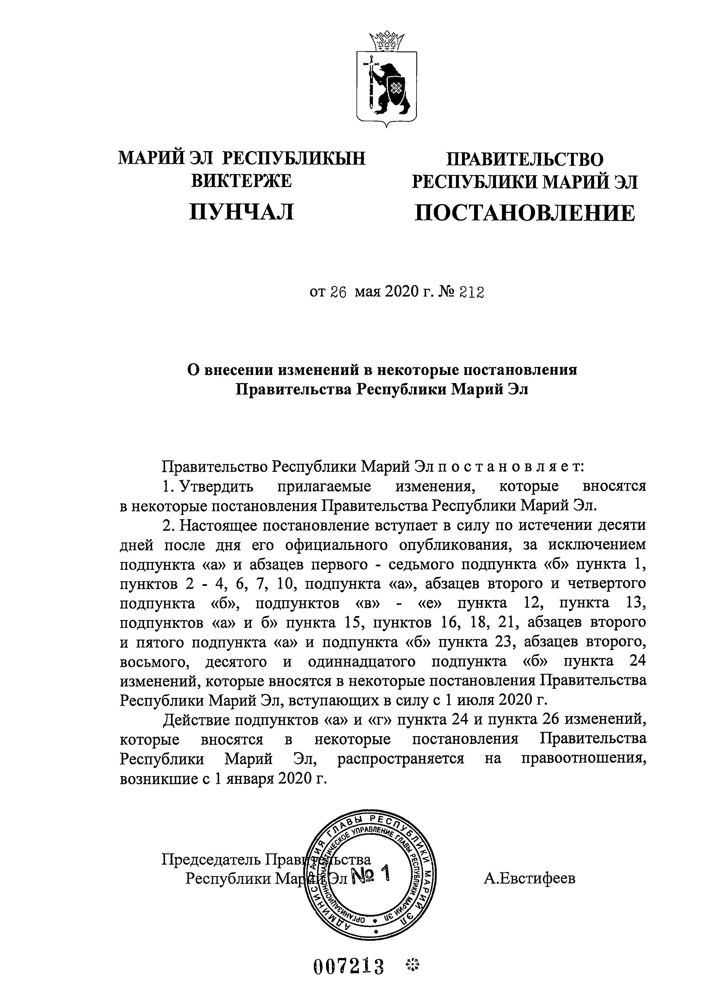 Сегодня, 26 мая, Глава Марий Эл Александр Евстифеев подписал Указ о внесении изменений в некоторые постановления Правительства республики. Большая часть их касается социальных выплат.