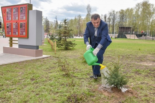 Руководитель Марий Эл посадил саженец голубой ели в йошкар-олинском Парке Победы. Он отметил, что с удовольствием принимает участие в столь важной инициативе.