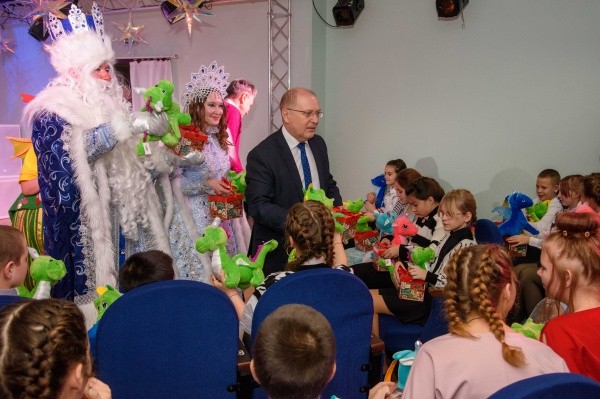 «Спасибо, что вы разделяете с нами этот замечательный праздник. Желаю вам исполнения всех ваших желаний. Пусть все у вас будет хорошо, дома царят радость, достаток и благополучие. Мы - большая семья и одна сплоченная страна. Самое главное, быть дружными, поддерживать друг друга. Ребята, с наступающим вас Новым годом!», - обратился к детям Юрий Зайцев.