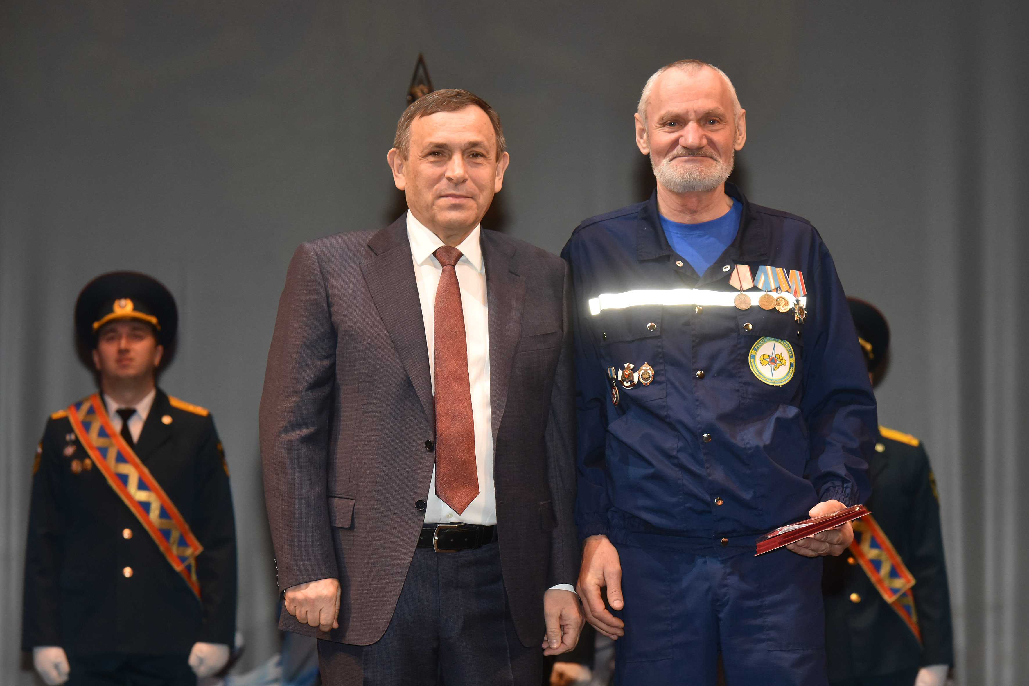 Он отметил, что «каждый из присутствующих осознает степень своей ответственности и с честью выполняет свой профессиональный и человеческий долг», выразил признательность ветеранам, поблагодарил спасателей республики за квалифицированное выполнение служебных обязанностей: