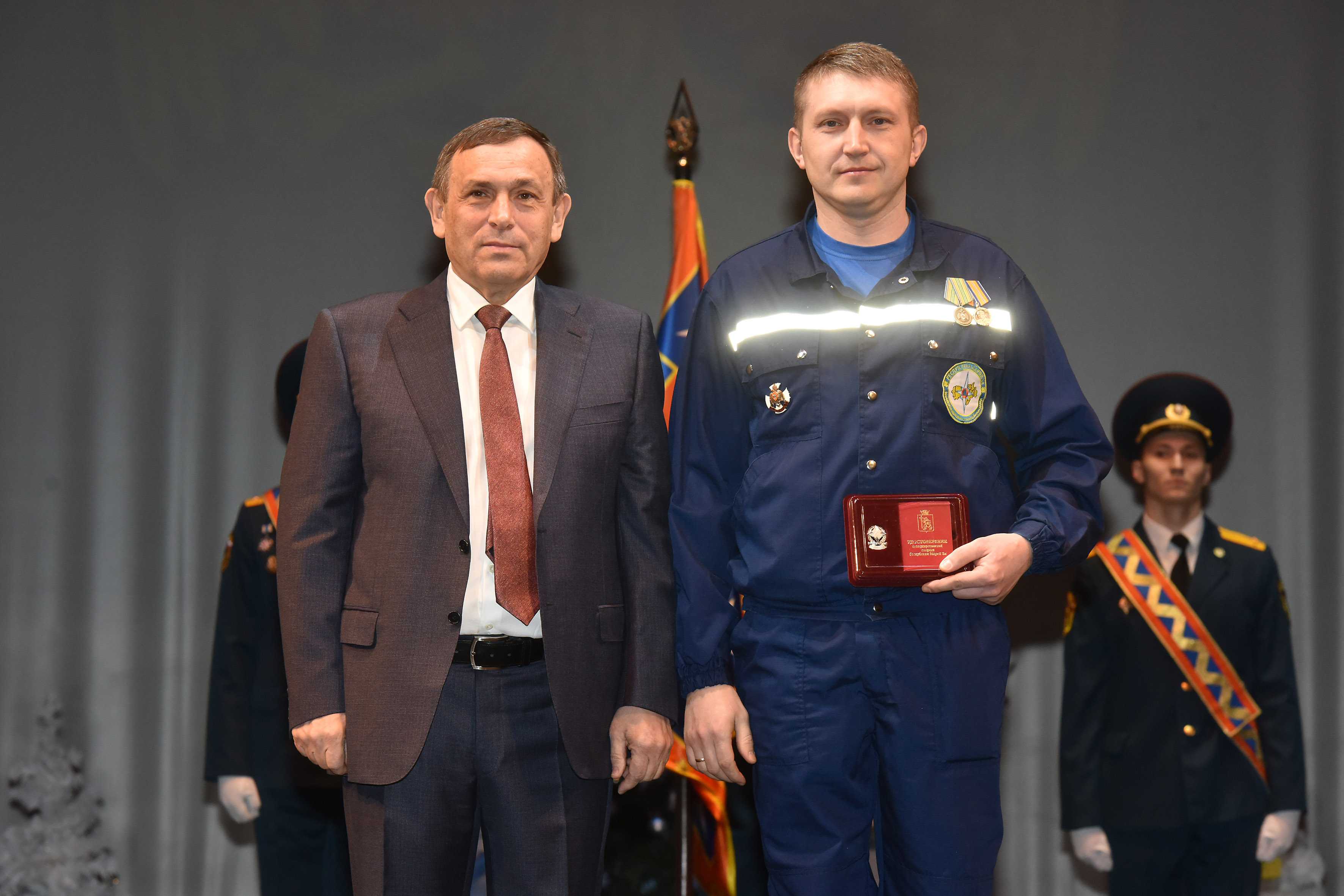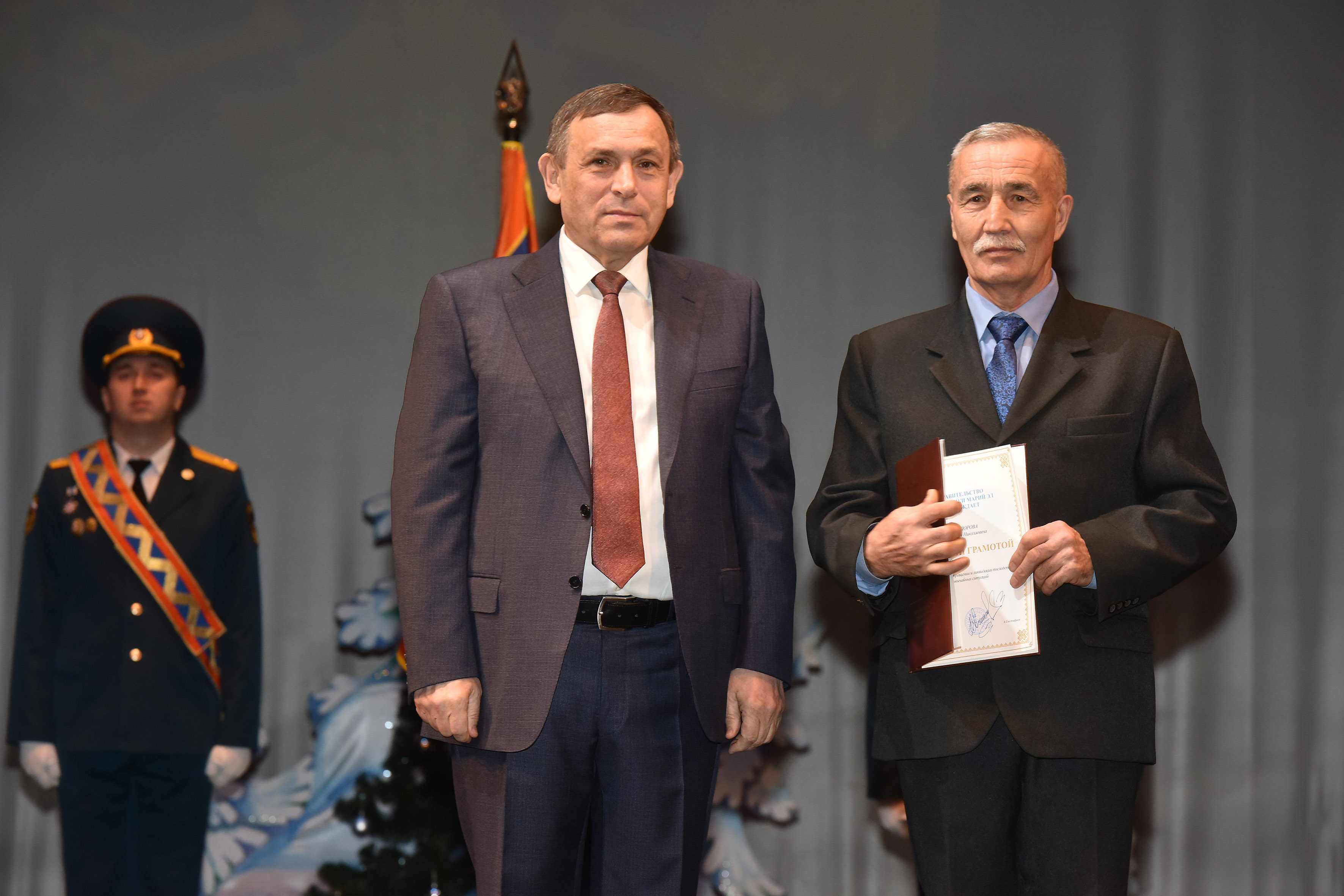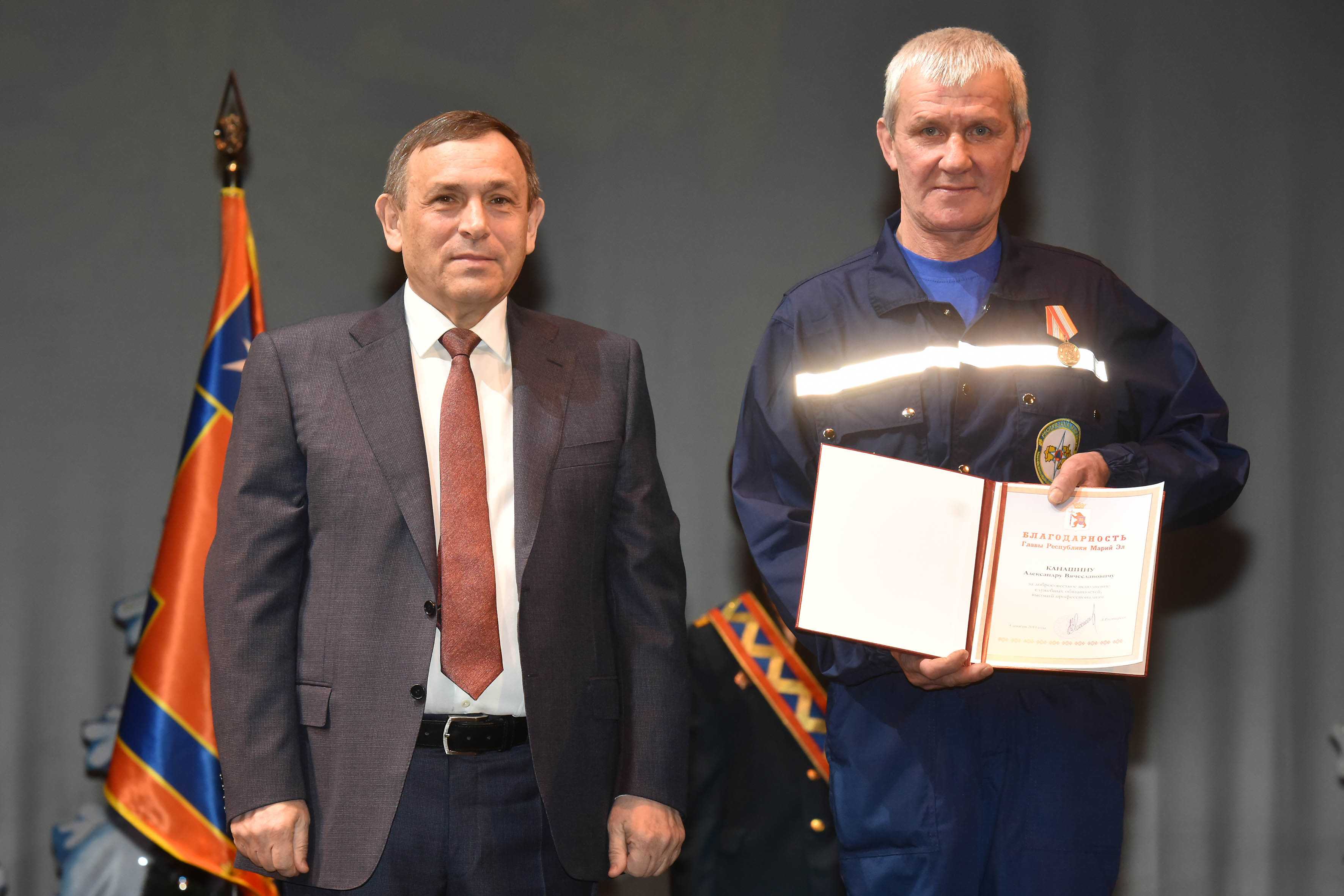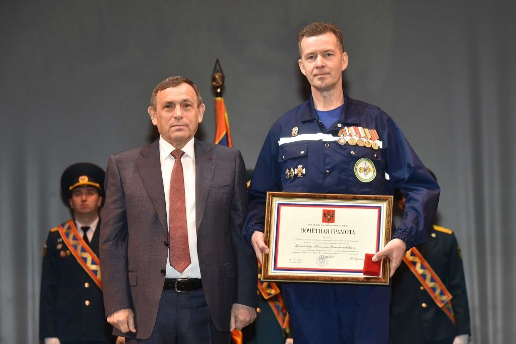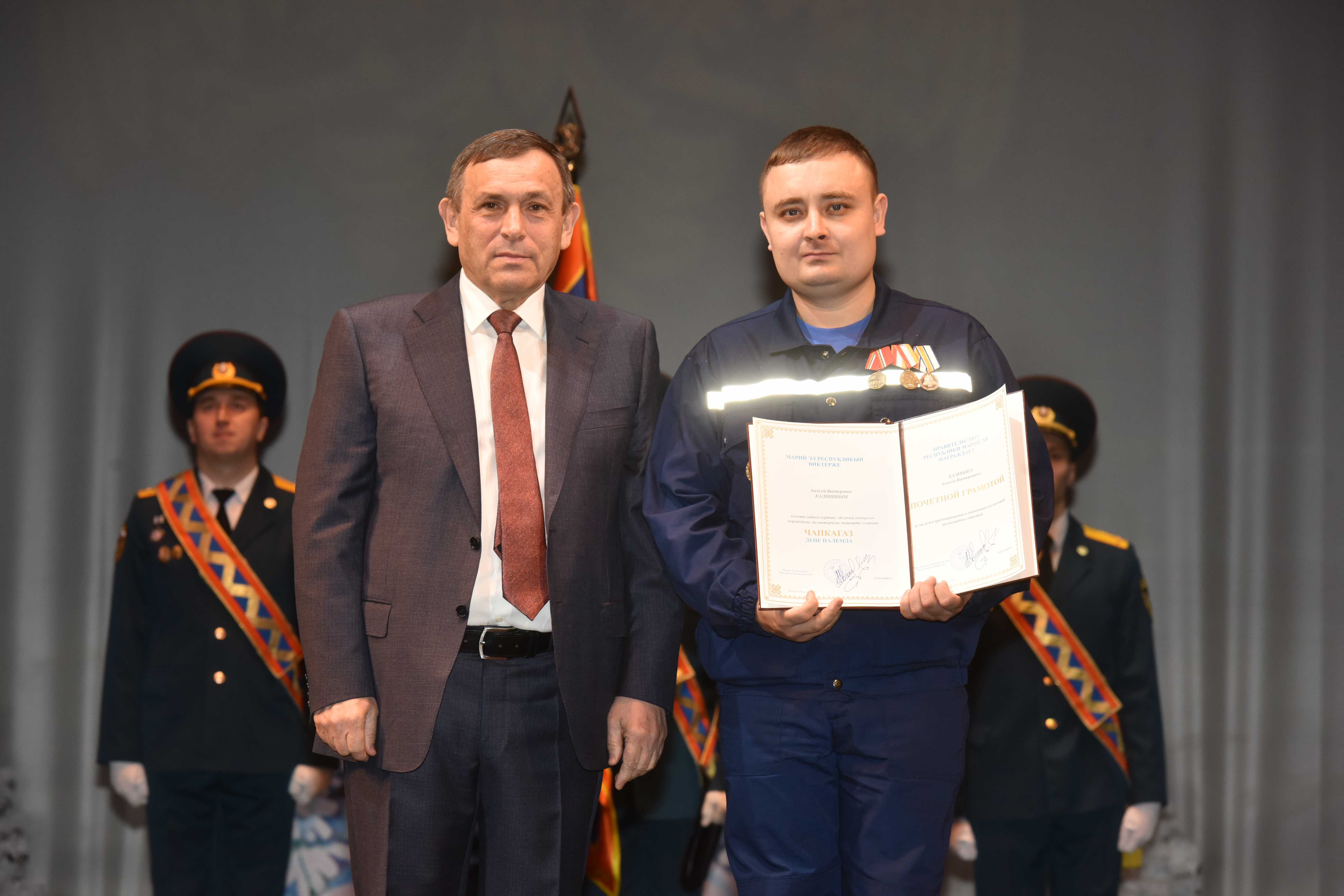 За заслуги в области защиты населения и территории от чрезвычайных ситуаций, высокие личные показатели в служебной деятельности Почетной грамотой Президента Российской Федерации награждены: первый заместитель начальника Главного управления МЧС России по Марий Эл Алексей Сабадырев, заместитель начальника по оперативной работе Марийской аварийно-спасательной службы Николай Самойлов.