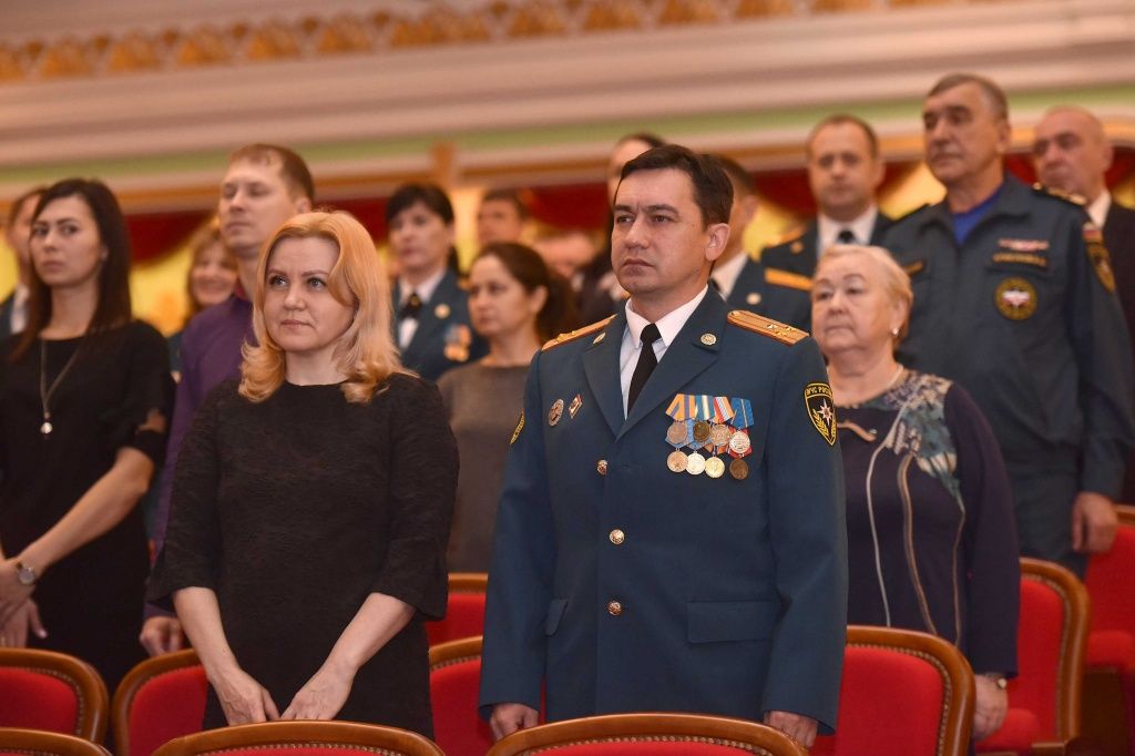 Традиционно праздничному мероприятию предшествовал показ фильма о деятельности и достижениях Главного управления МЧС России по Марий Эл и аварийно-спасательных служб региона. Сразу после этого со сцены театра зрители посмотрели видеопоздравление Министра Российской Федерации по делам гражданской обороны, чрезвычайным ситуациям и ликвидации последствий стихийных бедствий Евгения Зиничева, который отметил ценное умение спасателей быть готовыми к своей работе в любое время года: