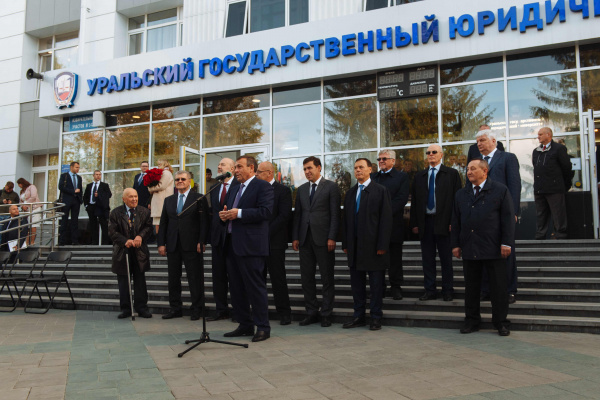 На торжествах присутствовали известные в России люди: генпрокурор РФ Юрий Чайка, председатель комитета Госдумы по государственному строительству и законодательству Павел Крашенинников и другие высокопоставленные лица. Вместе с почетными гостями Александр Евстифеев возложил цветы к мемориалам Сергея Алексеева, который основал уральскую школу теории права, и Дмитрия Остапенко, занимавшего с 1954 до 1986 года пост ректора свердловского юридического института.