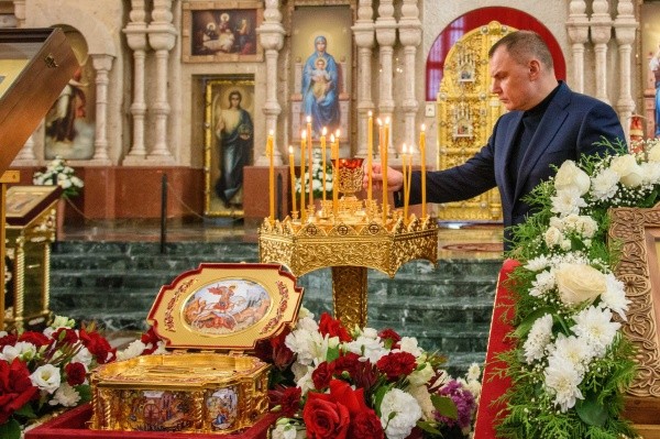 «Мы встречаем частицу мощей святого великомученика Георгия Победоносца, который является одним из главных символов нашей государственности, нашей страны. Особенно символично, что это событие происходит в великий для всех православных праздник. Мы молимся Богородице, святому великомученику о нашей победе, за ребят, которые сейчас мужественно борются с нацистами, желающими распада России. Сегодня и завтра каждый житель имеет возможность прийти, помолится, пожелать нашим воинам победы», - сказал Юрий Зайцев.