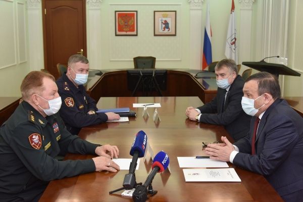 Глава Марий Эл Александр Евстифеев сегодня провел рабочую встречу с командующим Приволжским округом войск национальной гвардии России Александром Порядиным. Об этом сообщили в пресс-службе руководителя региона.