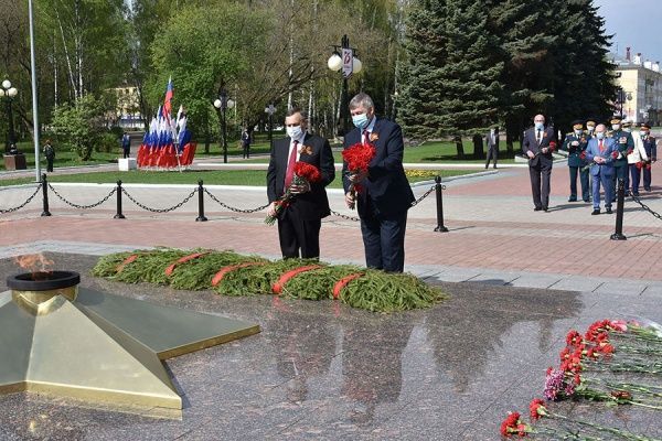 Сегодня, 9 мая, из-за угрозы распространения COVID-19 все массовые мероприятия в России отменены, а патриотические акции в честь Дня Великой Победы проходят в онлайн-формате. Поэтому церемония возложения цветов в Йошкар-Оле прошла в узком кругу лиц, с соблюдением масочного режима и дистанции 1,5 метра. Возглавил гражданскую процессию Глава Марий Эл Александр Евстифеев.