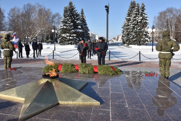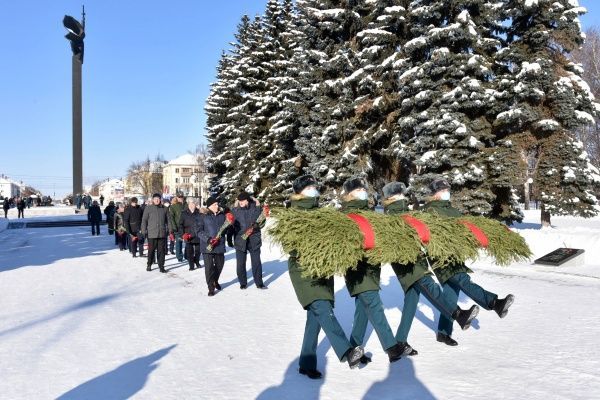 Торжественной церемонии не помешал крепкий мороз. В возложении цветов приняли участие члены правительства республики и Совета Федерации ФС Российской Федерации – сенаторы Константин Косачев и Сергей Мартынов, Председатель Государственного Собрания республики Анатолий Смирнов, Главный федеральный инспектор по Марий Эл Павел Волков, руководители силовых ведомств и другие официальные лица.