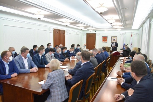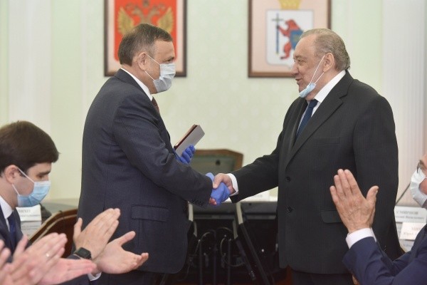 Сегодня Глава Марий Эл Александр Евстифеев провел встречу с депутатами Госсобрания республики в Доме Правительства. Перед началом мероприятия он поздравил с 75-летием Почетного Председателя Государственного Собрания Марий Эл Юрия Минакова.