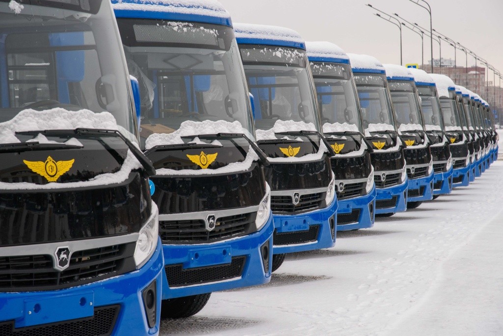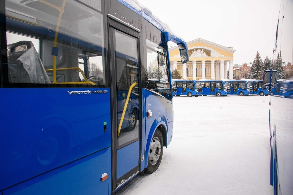 Вместимость низкопольных автобусов – до 55 человек. Они оснащены системами видеонаблюдения, кондиционирования, подсчёта пассажиропотока и безналичной оплаты проезда. В транспорте оборудовано место для маломобильных пассажиров. Дизайн всех машин выполнен в единой цветовой гамме.