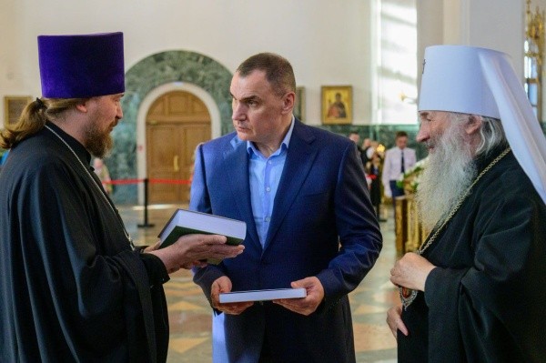 Посетил Кафедральный собор Благовещения Пресвятой Богородицы и Глава Марий Эл Юрий Зайцев, чтобы поклониться святыне.