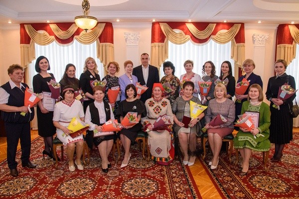 В завершении встречи он поздравил присутствующих с Международным женским днём и вручил заслуженные награды.