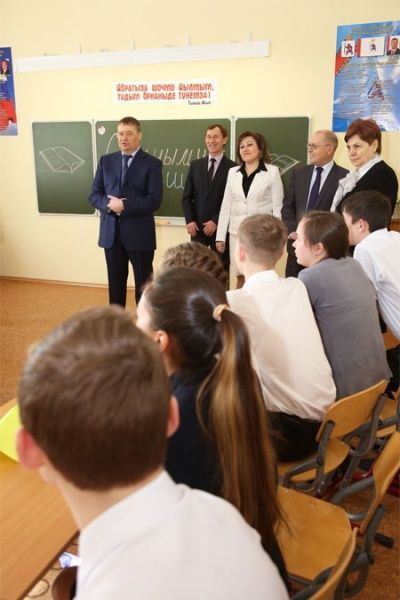 Помимо учебных кабинетов Глава Марий Эл Леонид Маркелов побывал в столовой и спальном корпусе школы-интерната, поинтересовался меню и условиями проживания детей.