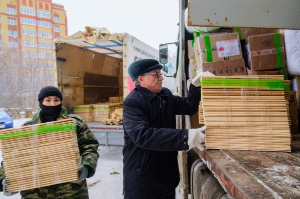 В зону проведения СВО направлено более 25 кубических метров пиломатериалов, профнастил, металлические уголки и трубы, генераторы, теплоизоляция, окопные печи, свечи. В составе груза – зимние колеса, маскировочные сети, автомобили (два УАЗ «Буханка», две «Нивы», «Приора», УАЗ «Хантер»), прицеп, два электросамоката, два кроссовых мотоцикла, три охотничьих ружья с боеприпасами.