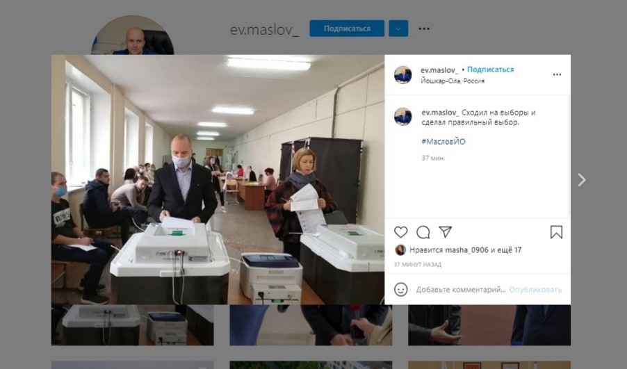 В своем Instagram мэр Йошкар-Олы Евгений Маслов разместил фотографию из территориального избирательного участка.