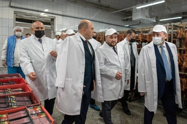 Премьер-министр России Михаил Мишустин осмотрел перерабатывающий цех и ознакомился с продукцией предприятия.