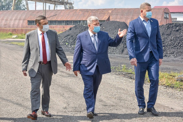 Во время визита Александр Евстифеев осмотрел помещение диспетчерской, площадку выгрузки-погрузки и хранения угля, а также обсудил с учредителем Андреем Севастьяновым производственные мощности компании.