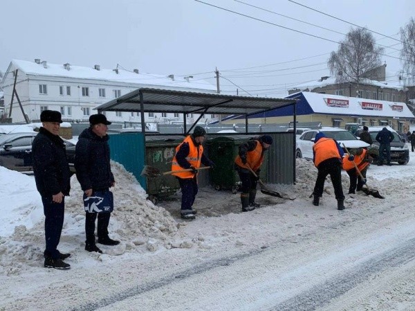 Представители «Единой России», секретарь Моркинского отделения Гарафий Хуснутдинов, член Политсовета Валерий Борисов и председатель Молодежного парламента Владимир Федоров проверили, как идет расчистка улиц от снега и наледи в поселке Морки.
