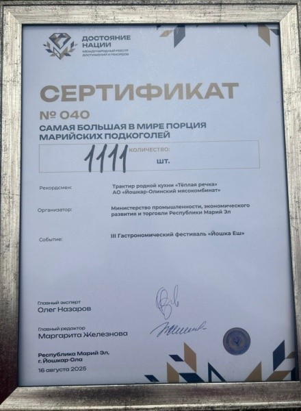 На площадке III Межрегионального гастрономического фестиваля «Йошка Еш» приготовили 1111 подкоголей. Результат был засвидетельствован в Международном реестре достижений и рекордов «Достояние нации», где фиксируют только высшие достижения, которыми может гордиться общество.