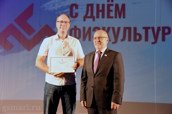 Михаил Васютин за многолетний добросовестный труд в области физкультуры и спорта вручил награды директору Спортшколы олимпийского резерва по легкой атлетике Алексею Гребневу, начальнику отдела правового обеспечения, госслужбы и кадров Минспорта Юлии Ефимовой и председателю Федерации всестилевого каратэ России по Марий Эл Сергею Занькову.