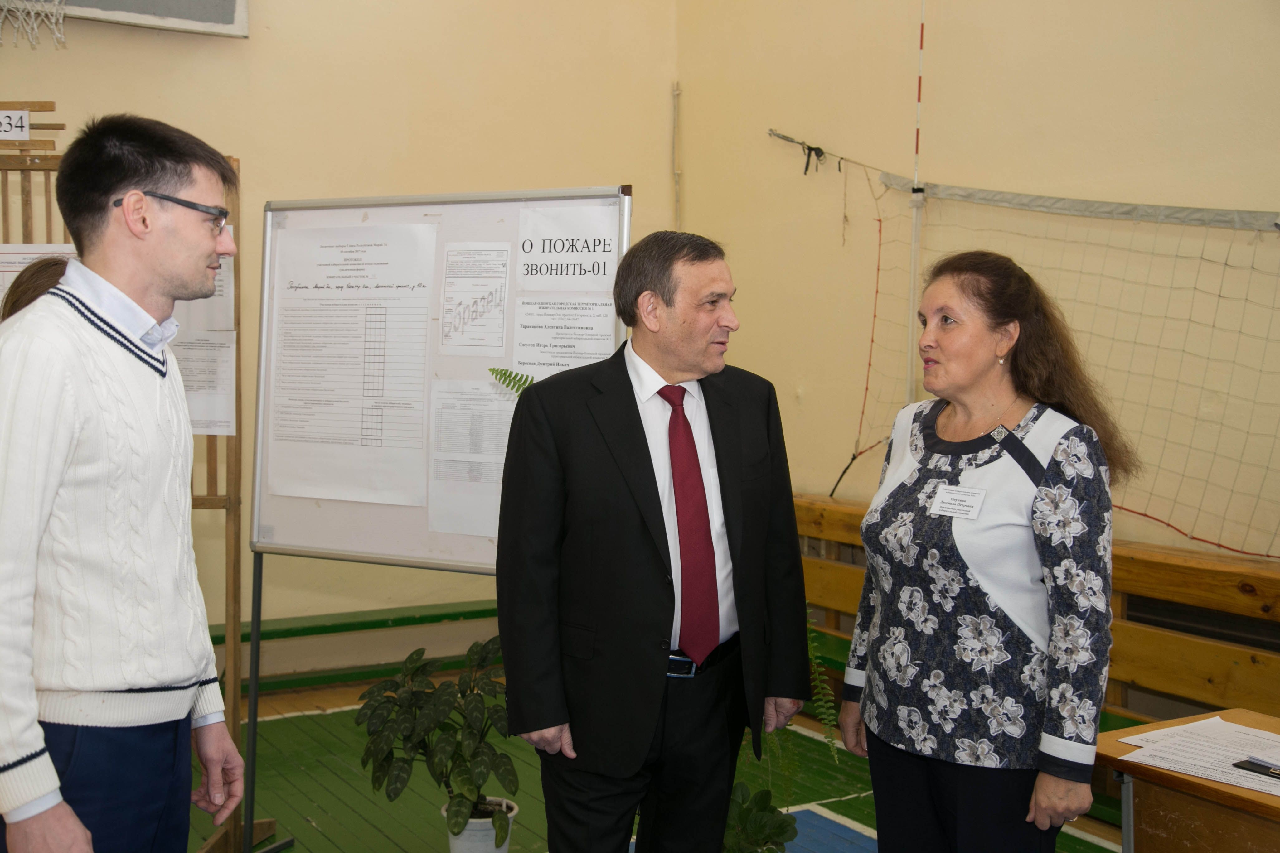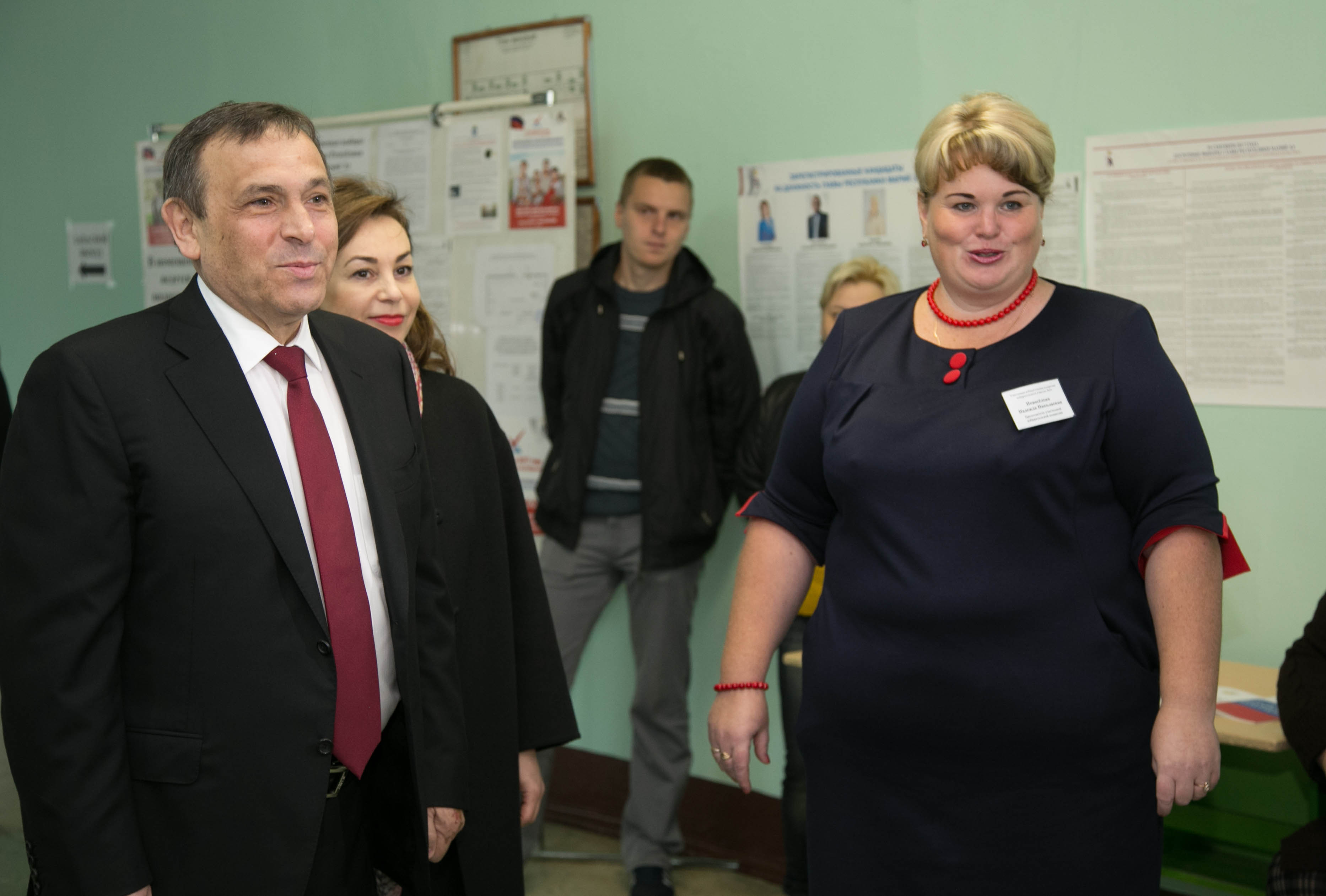 Временно исполняющий обязанности Главы Республики Марий Эл побывал в школе №29 г. Йошкар-Олы, где были расположены три избирательных участка: № 34, № 36 и №37. Один из них – именной, в честь первого директора школы, заслуженного учителя РФ Валерия Трунина, другой избирательный участок - оснащен по программе «Доступная среда». Помимо специально созданных условий для маломобильных групп населения, на данном участке находились волонтеры и сурдопереводчики.