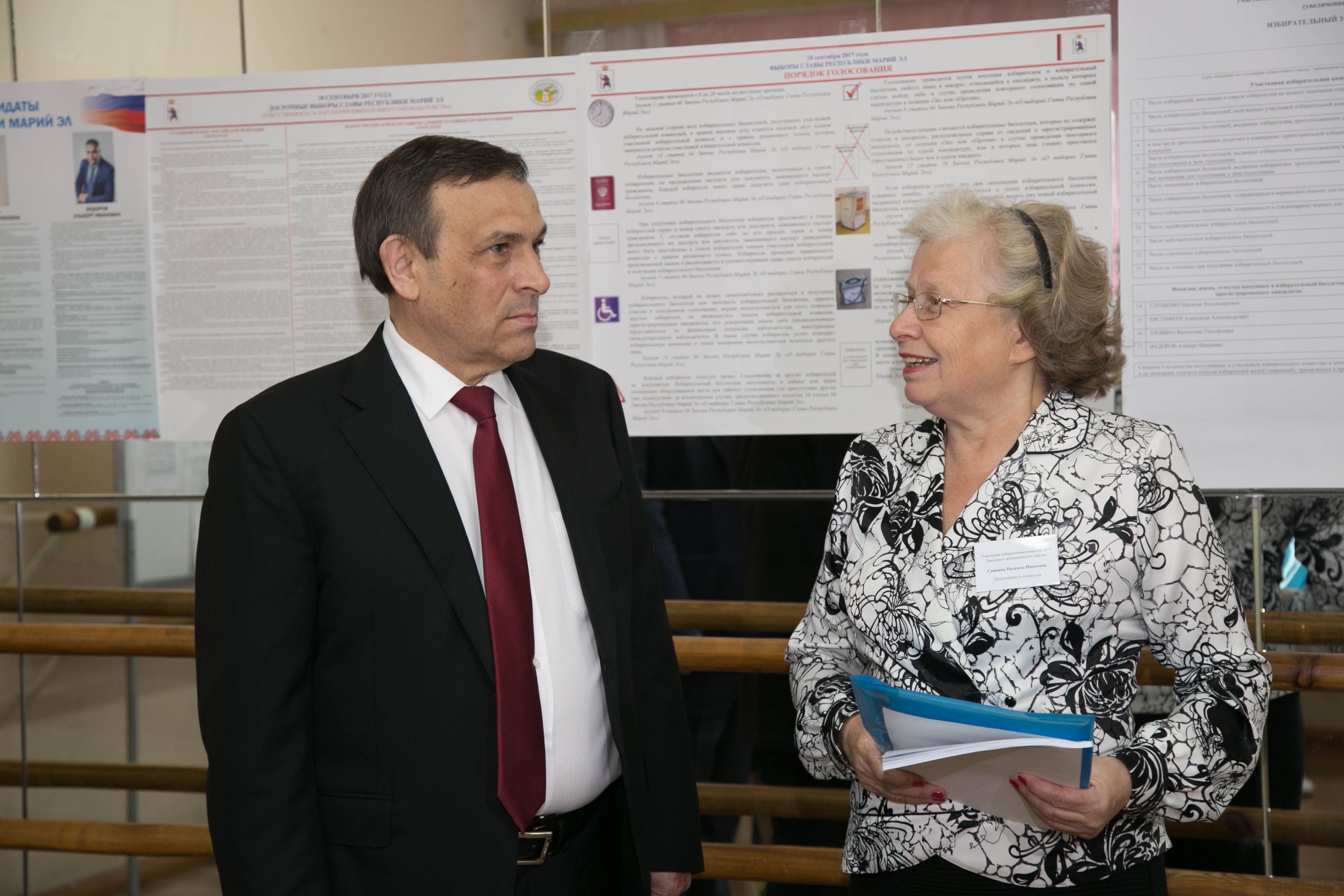 Александра Евстифеева сопровождала супруга Юлия. После осмотра избирательных участков временно исполняющий обязанности Главы Республики Марий Эл отметил хорошую организацию выборов в республике.