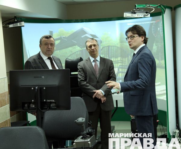 Побывал Александр Ситников и в уникальном даже в масштабах страны Центре инжиниринга и промышленного дизайна «Биоэнергия», по достоинству оценив разработанную проректором ПГТУ Игорем Петуховым уникальную методику подготовки операторов современных лесозаготовительных машин – харвестеров и форвардеров. На первом этапе все обучающиеся проходят тестирование: к примеру, у кого-то «недотягивает» скорость реакции, у кого-то – глазомер... Далее для каждого разрабатывается индивидуальная программа для исправления «слабых мест» и идет работа на тренажерах, для которых в Волгатехе выделен целый класс. После этого навыки закрепляются на симуляторах, реально воспроизводящих кабину машины. И, наконец, тренировки на «живой» технике на полигоне учебно-опытного лесхоза.