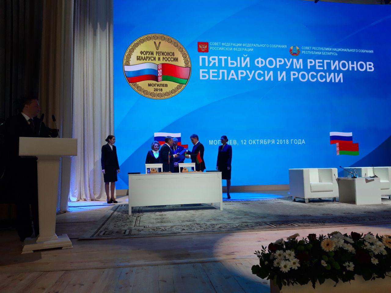 Соглашение было заключено во время V Форума регионов России и Беларуси при участии спикера Совета Федерации России Валентины Матвиенко и Председателя Совета Республики Национального собрания Беларуси Михаила Мясниковича.