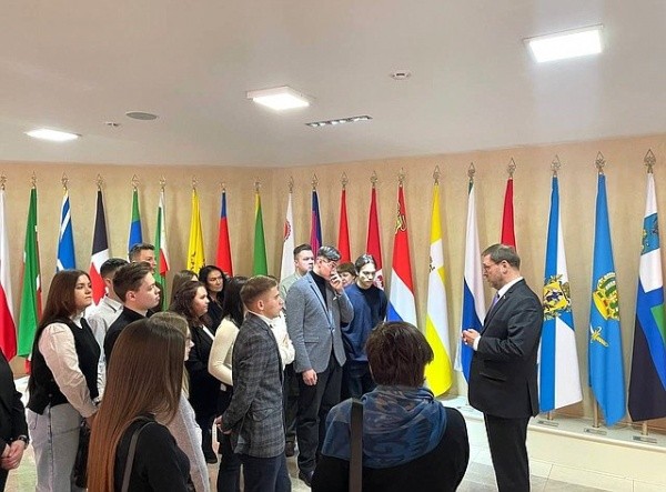 Студенты из Йошкар-Олы побывали на экскурсии по зданию Совета Федерации, посетили 533-е пленарное заседание палаты, а также осмотрели историко-документальную выставку «Знать и помнить», приуроченную к проведению Дней Новгородской области в Совете Федерации.