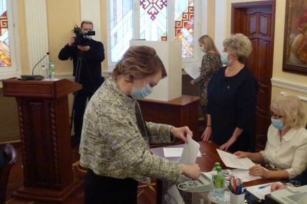 Затем были избраны: заместитель председателя Центризбиркома (им стал Вениамин Осокин), секретарь (Ольга Крюкова), член комиссии, работающий на постоянной основе (Мария Микка).