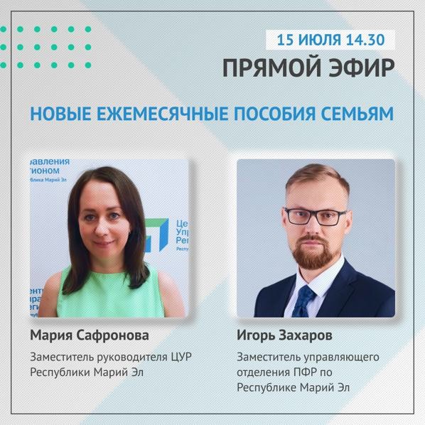 ЦУР Марий Эл 15 июля проведет прямой эфир о новых выплатах одиноким родителям, беременным и школьникам к 1 сентября