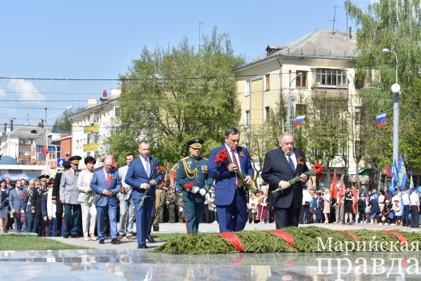 Торжественные мероприятия в столице республики начались с церемонии возложения цветов к монументу Воинской Славы и Вечному огню. Гражданскую процессию возглавили Глава Республики Марий Эл Александр Евстифеев и Председатель Государственного Собрания Марий Эл Юрий Минаков.
