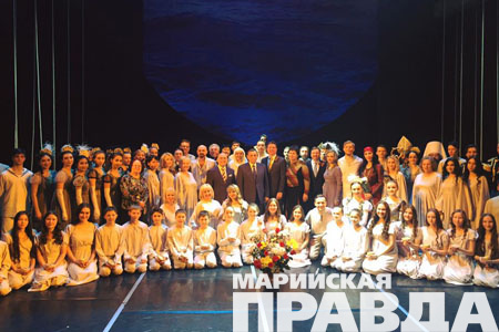Руководитель региона преподнес корзину цветов артистам, в неформальной обстановке пообщался с труппой после спектакля и сфотографировался с коллективом на память, сообщает Управление общественных связей и информации Главы Республики Марий Эл.