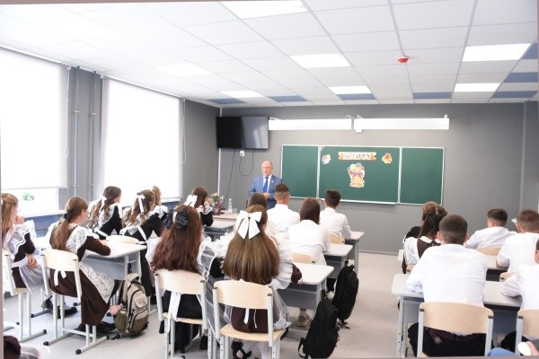Михаил Васютин провел открытый урок для старшеклассников «Разговор о важном», встретился с педагогами и передал в школьную библиотеку подборку книг и журналов из личной библиотеки.