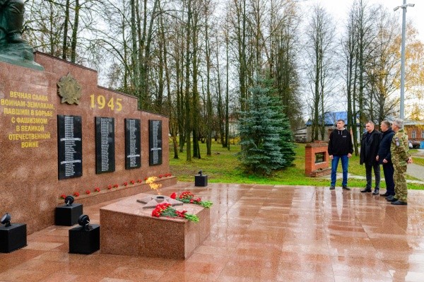 В ходе посещения Куженерского района Глава Марий Эл осмотрел благоустроенный парк и обелиск воинам, павшим во время Великой Отечественной войны 1941-1945 годов. Юрий Зайцев, вместе с участником кадровой программы «Герои Марий Эл. Талешке-влак» Павлом Поповым, чьим наставником в рамках проекта он является, возложили цветы к монументу.