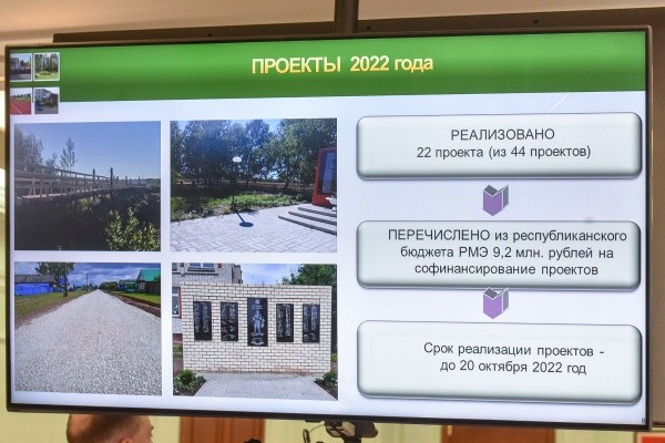 Кстати говоря, с 1 февраля 2022 года проходит конкурсный отбор проектов на следующий год. На данный момент представлено на участие 13 заявок, из них 5 – поселениями Медведевского района, 4 – поселениями Советского района, 2 – городским округом «Город Волжск» и 2 заявки – поселениями Сернурского района.