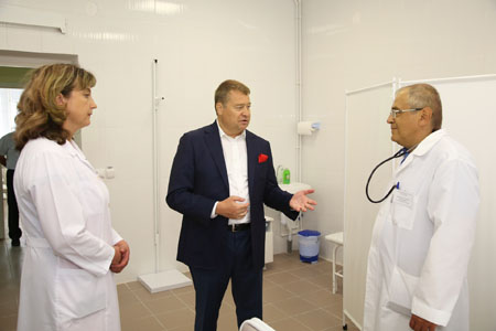 Глава Республики Марий Эл Леонид Маркелов посетил поселок Суслонгер Звениговского района, где открыл врачебную амбулаторию, лично осмотрел кабинеты и пообщался с местными жителями.