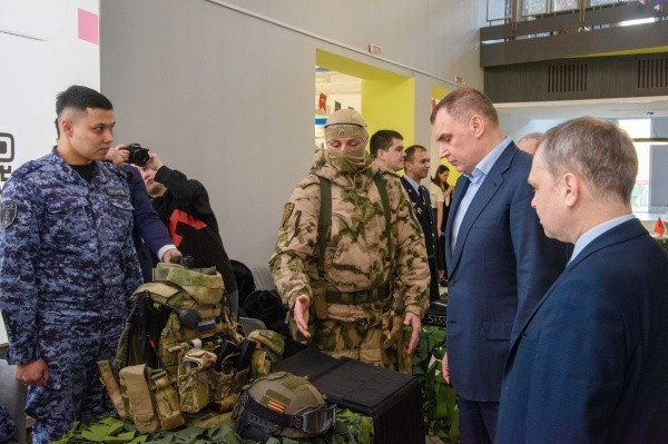Перед началом торжественной части Глава Марий Эл осмотрел интерактивные выставки, образцы вооружений.
